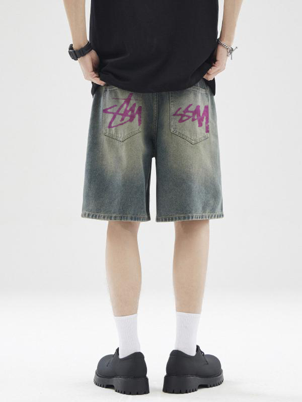 Men’s Letter Print Loose Casual Denim Shorts
