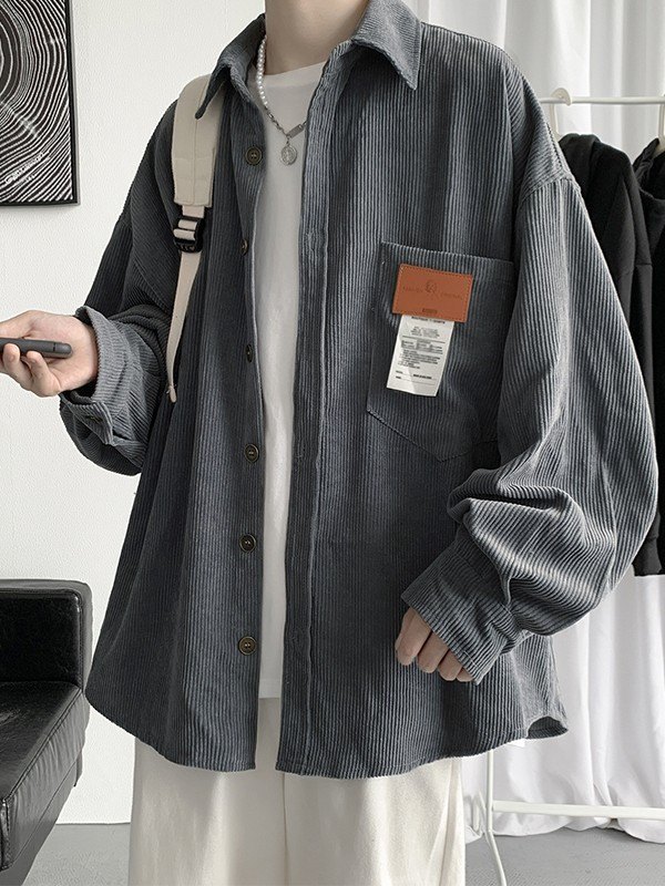 Men’s Patch Detail Corduroy Long Sleeve Shirt