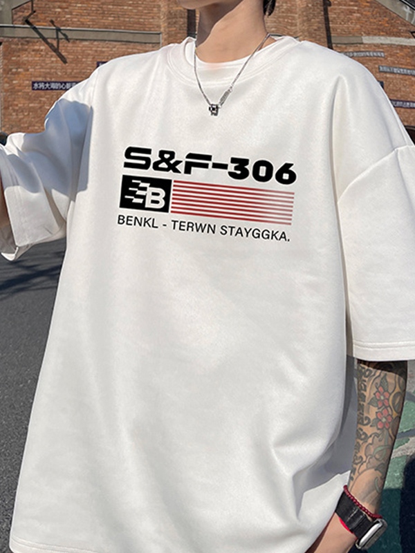 Men’s Striped Letters Oversized Short Sleeve Tee