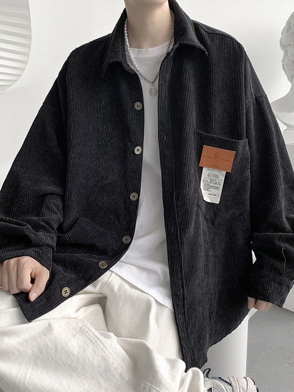 Men’s Patch Detail Corduroy Long Sleeve Shirt