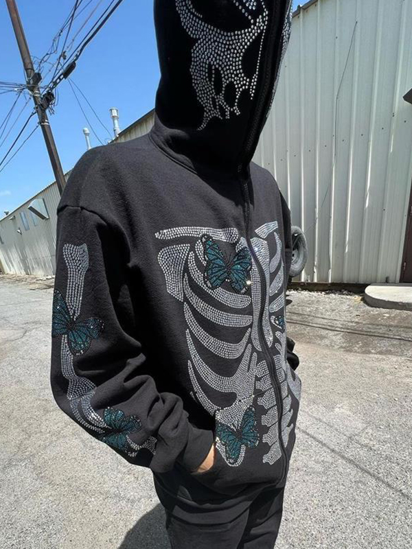 Men’s Skeleton Butterfly Rhinestone Oversized Hoodie