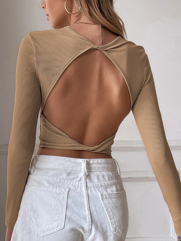 Solid Cutout Backless Twist Back Long Sleeve Knit