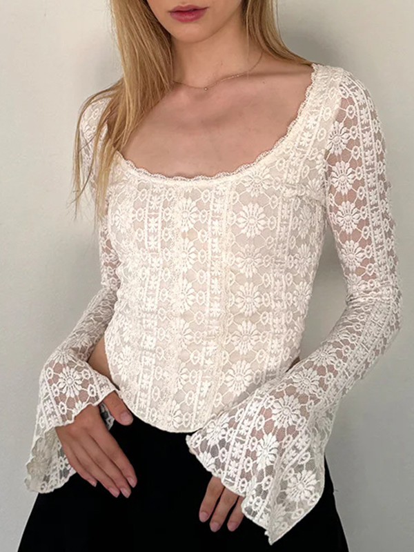 Solid Color Lace Long Sleeve Tee