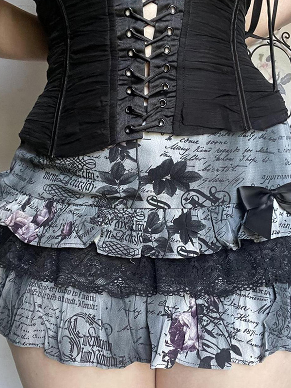 Lace Splicing Ruffles Contrasting Colors Mini Skirts