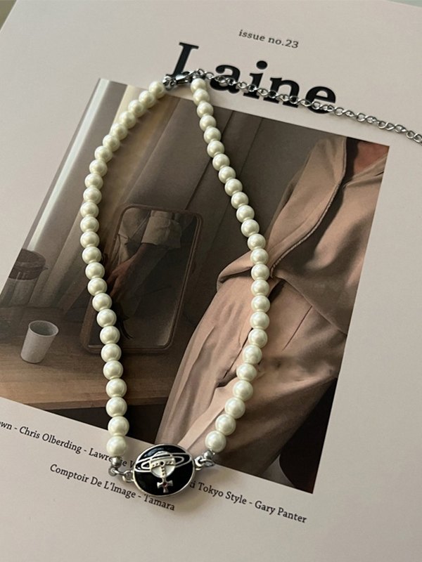 Enamel Charm Faux Pearl Necklace