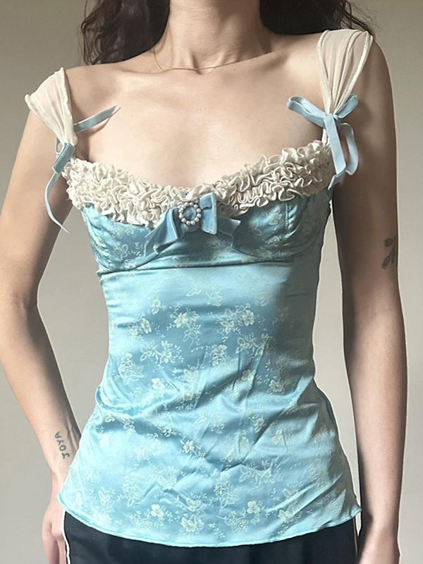 Lace Bow Print Cami Top
