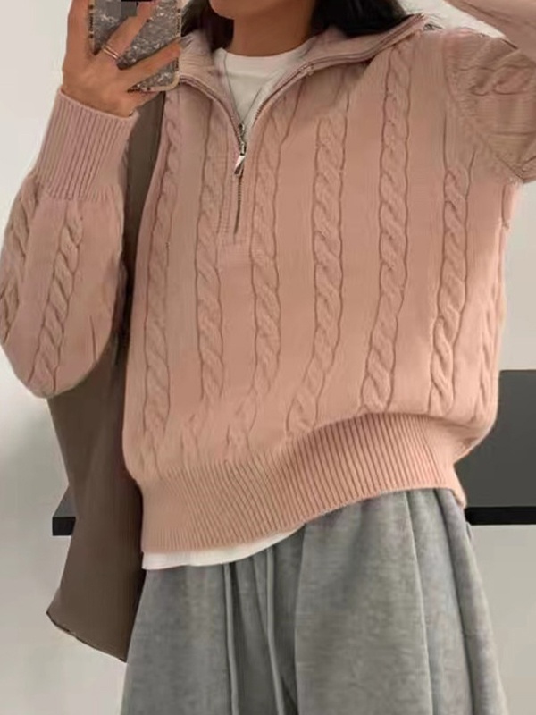 Vintage Lapel Neck Cable Half Zip Knit Sweater