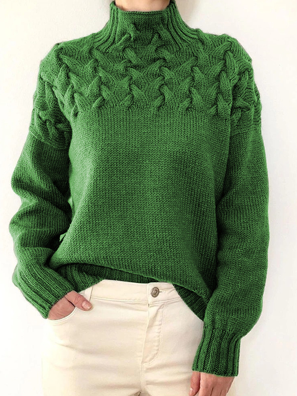 Solid Cable Knit Splice Turtleneck Sweater