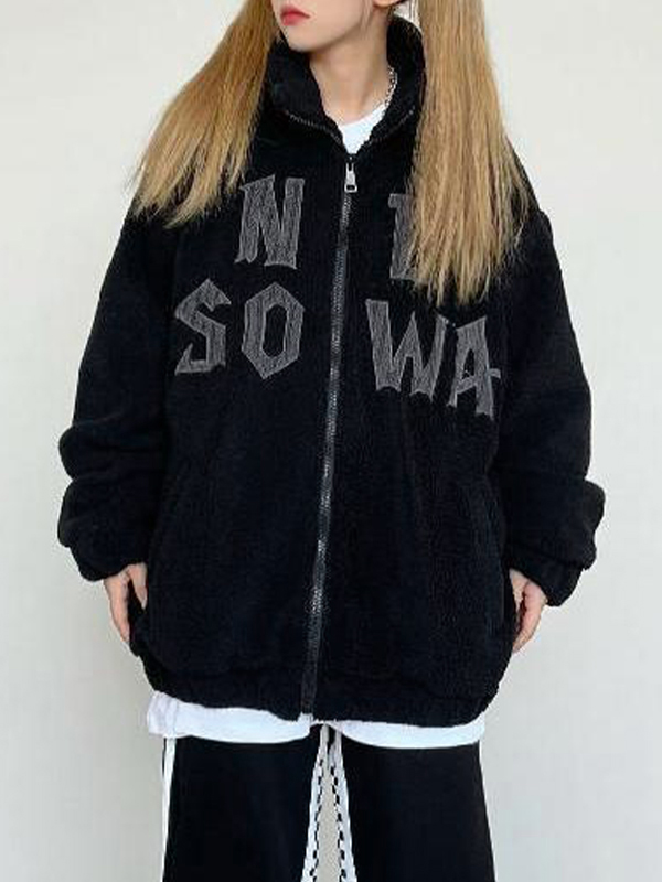 Letter Embroidered Lambswool Oversized Jacket