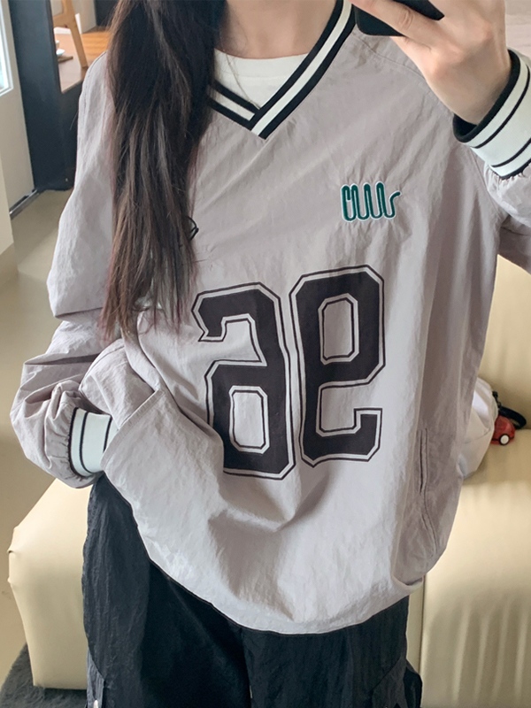 Number Print V Neck Thin Sweatshirt