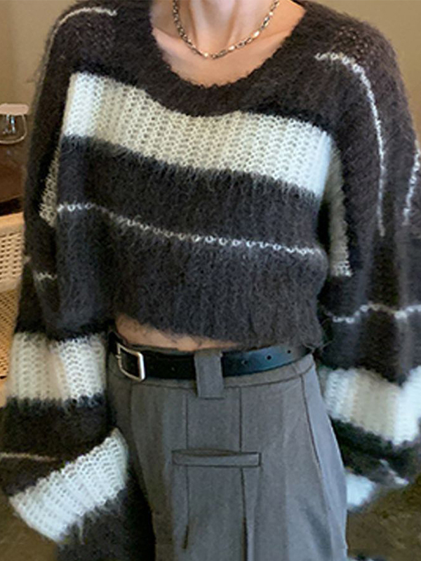 Contrast Color Stripe Splice Short Sweater