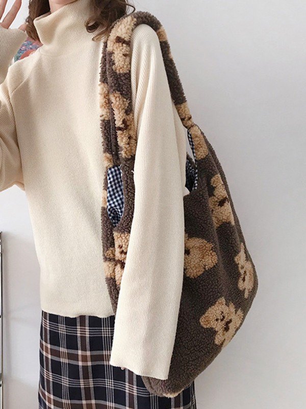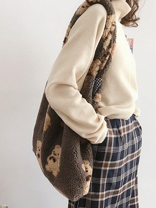 Be the first to review “Bear Pattern Fleece Shoulder Bag”
