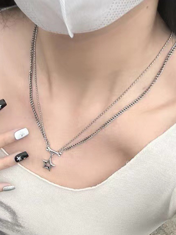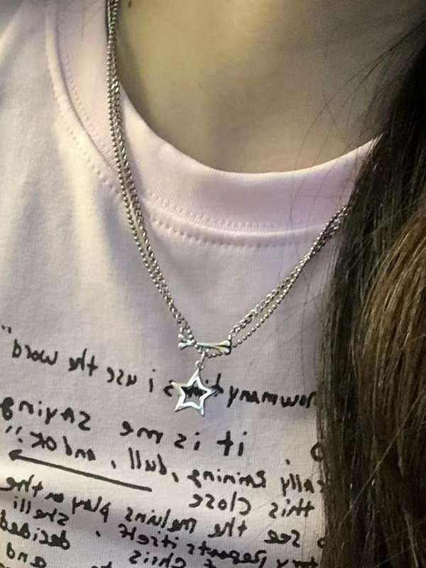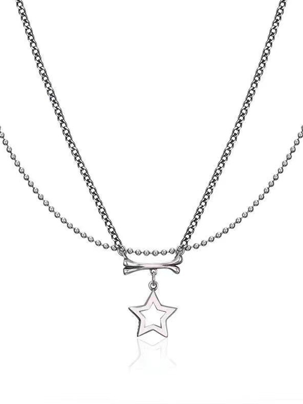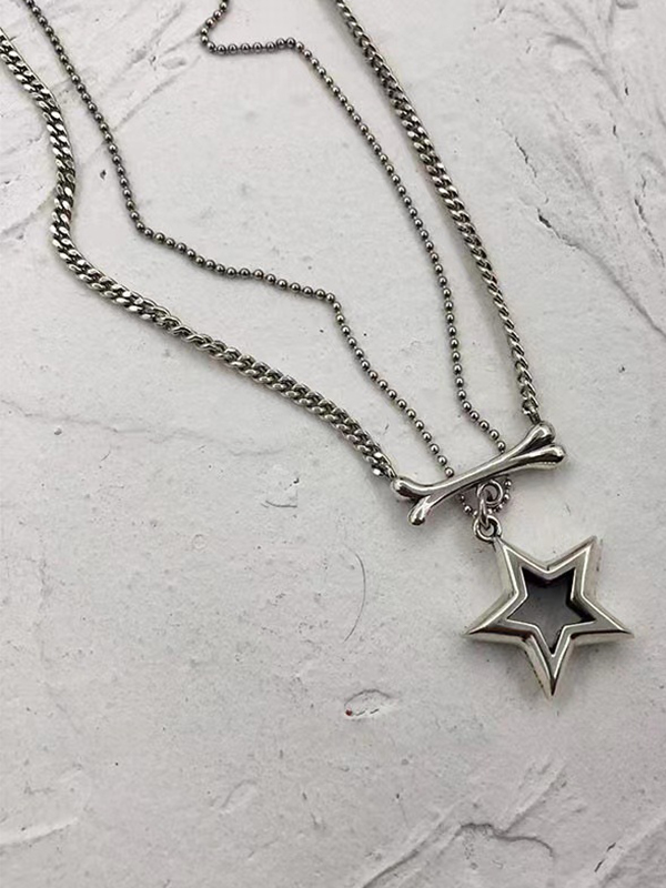 Double Layered Cutout Star Bone Charm Necklace