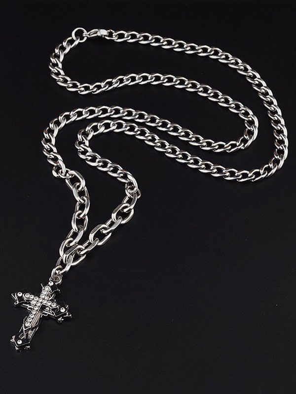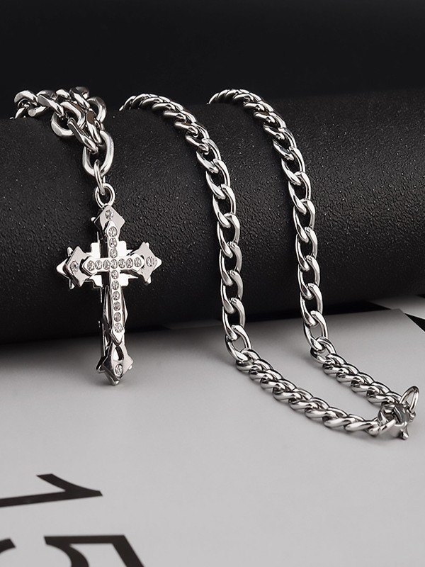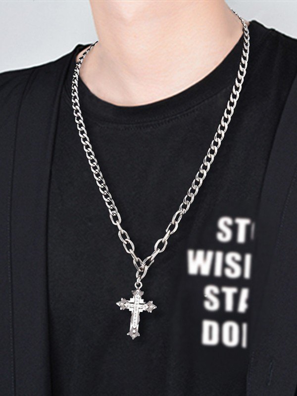 Men’s Rhinestone Cross Pendant Necklace