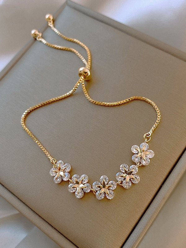 Rhinestone Floral Adjustable Golden Bracelet