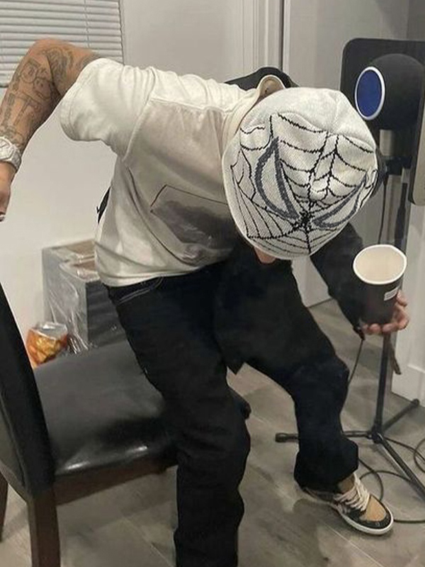 Spider Web Print Rhinestone Embellished Beanie Hat