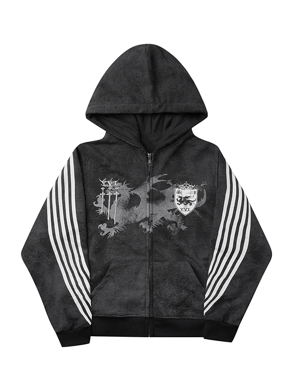Grunge Rhinestone Print Zip Up Hoodie