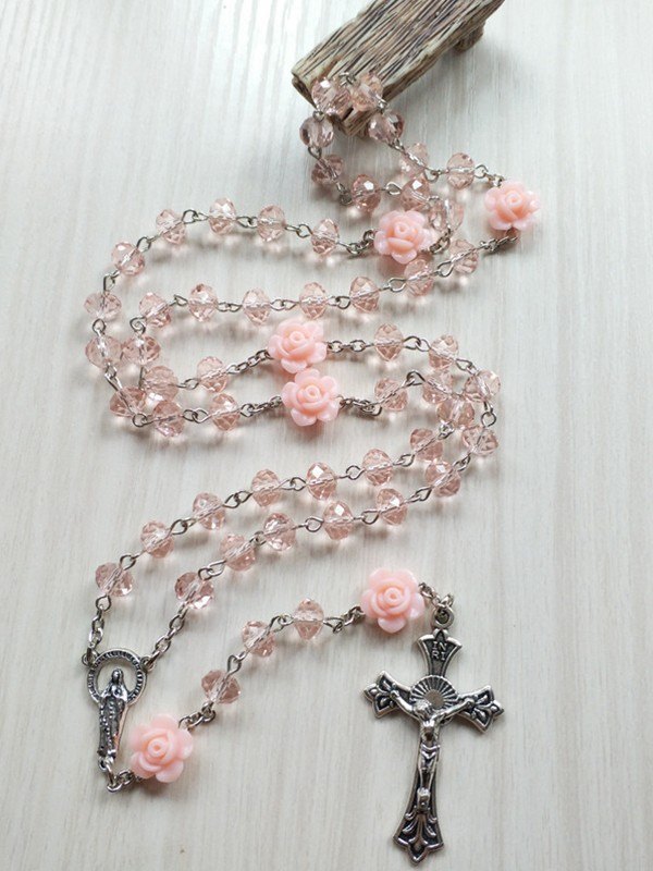 Floral Cross Pendant Long Beads Necklace
