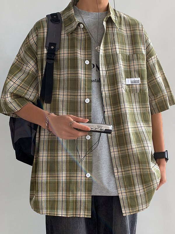 Men’s Pocket Buttoned Short Sleeve Checkered Shirt