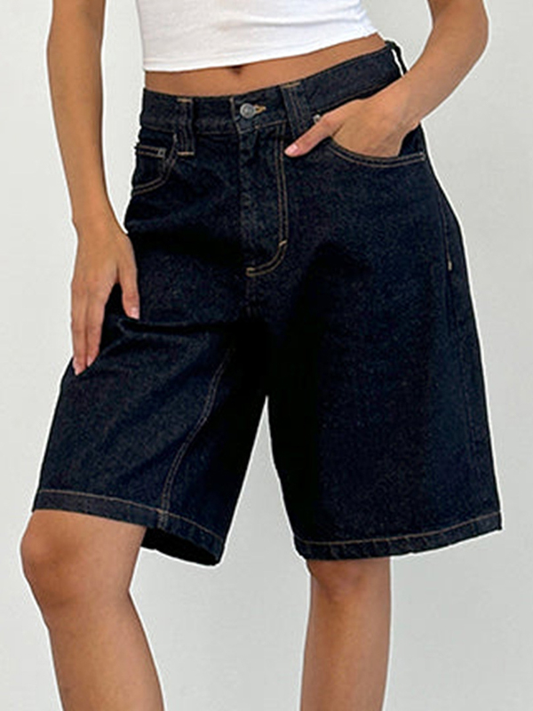Non-Elastic Slimming Denim Shorts
