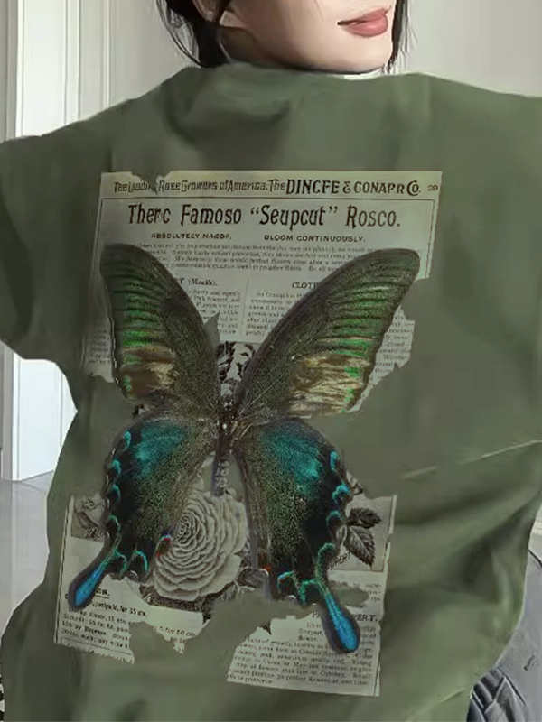 Vintage Butterfly Print Crew Neck Sweatshirt