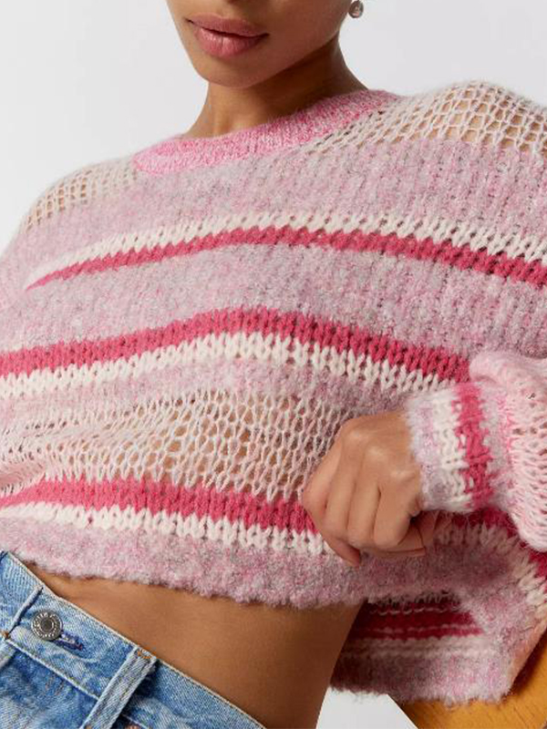 Contrast Color Striped Loose Cropped Sweater
