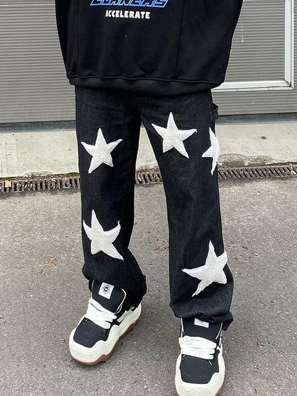 Men’s Star Print Loose Jeans