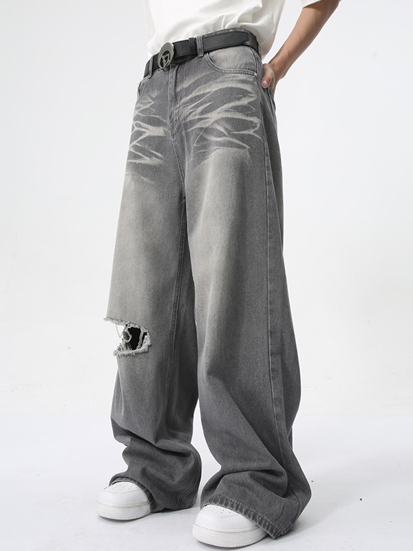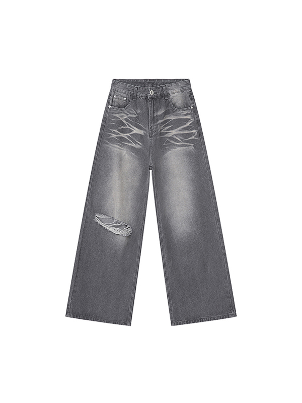 Vintage Washed Pattern Holes Loose Jeans
