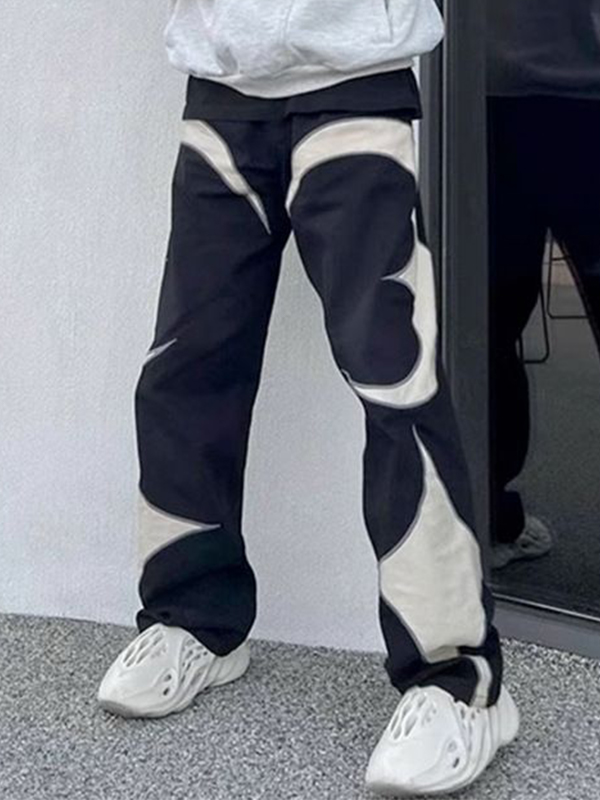 Lace Patchwork Wooden Trim Flare Leg Pants