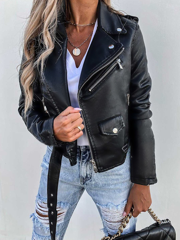 Vintage Zipper Flap Detail Short Motorcycle leather Jacket
