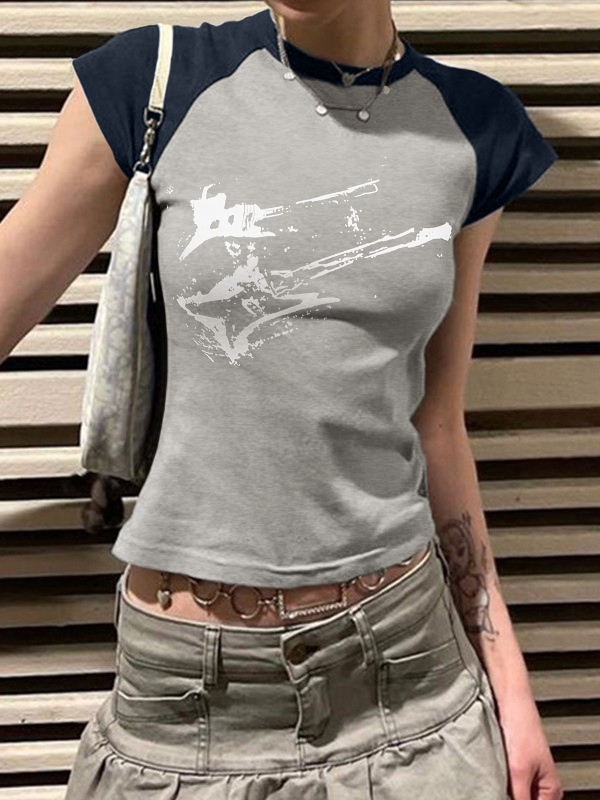Lace Trim Splice Square Neck Crop Long Sleeve Tee